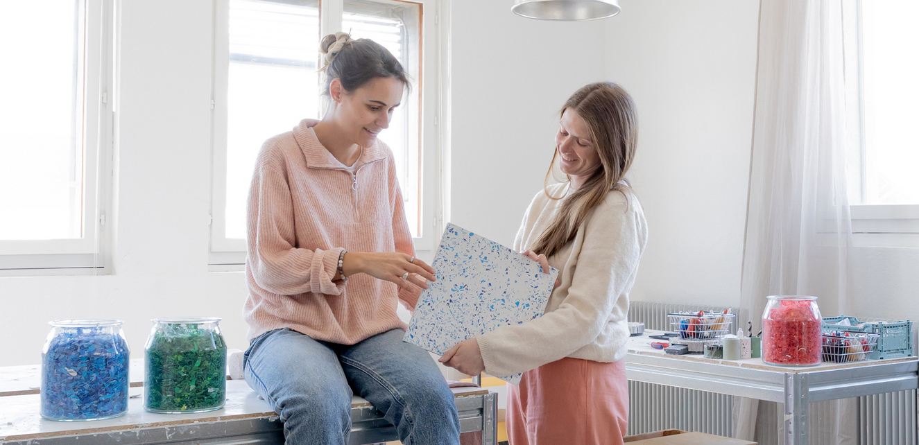 Die Erinnerungen sind noch sehr präsent, ebenso die Emotionen. «Wir denken gerne daran zurück. Dieser Sieg war ein verrücktes Gefühl!» Vor acht Monaten, im Juni 2025, gewannen Mégane Dubuis und Séverine Dolt den Prix Créateurs WKB. Jury und Publikum waren begeistert von ihrem Unternehmen Coloc Atelier, das sich auf die Herstellung von Objekten aus Öko-Kunstharz in einem Terrazzo-Rendering (eine Mischung aus Gips und einer Acrylflüssigkeit auf Wasserbasis) spezialisiert hat. Die beiden Freundinnen hatten speziell für den Wettbewerb einen Hocker - Plastoc - entworfen, in den zermahlene Pet-Flaschenverschlüsse aus Öko-Kunststoff eingearbeitet waren. Ihr Ansatz, ethische Werte, Design und Ästhetik miteinander zu verbinden, war ein Volltreffer.