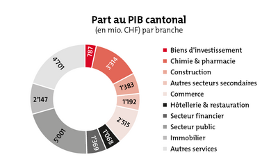 Pour l'année en cours, BAK Economics prévoit un PIB valaisan de CHF 23’678 millions. Environ 70% de cette valeur ajoutée provient du secteur tertiaire. Les secteurs les plus performants sont le secteur public avec CHF 5’001 millions et les autres services avec CHF 4’701 millions. Le commerce constitue également un pilier important avec CHF 2’515 millions. Dans l'industrie, le secteur chimique et pharmaceutique domine largement, générant à lui seul CHF 3’314 millions.